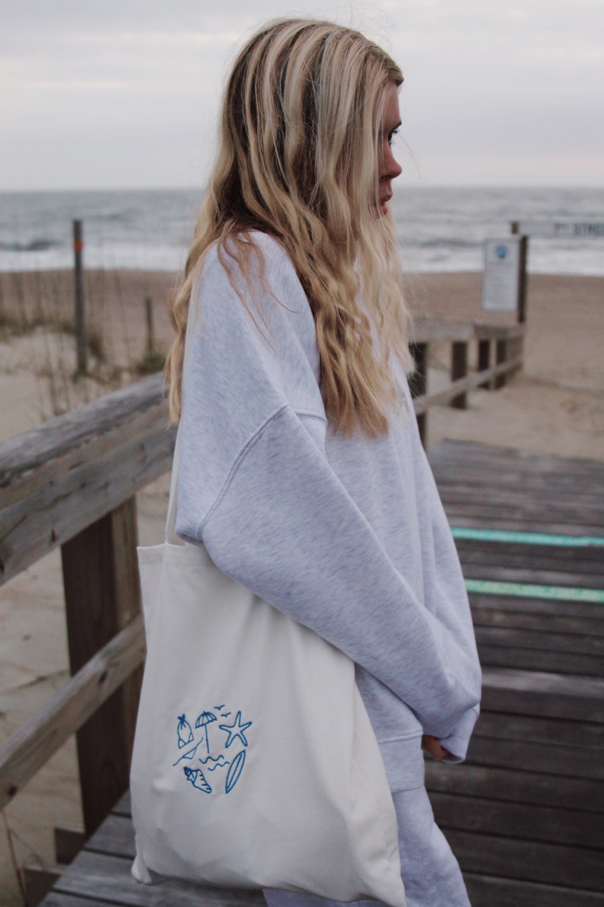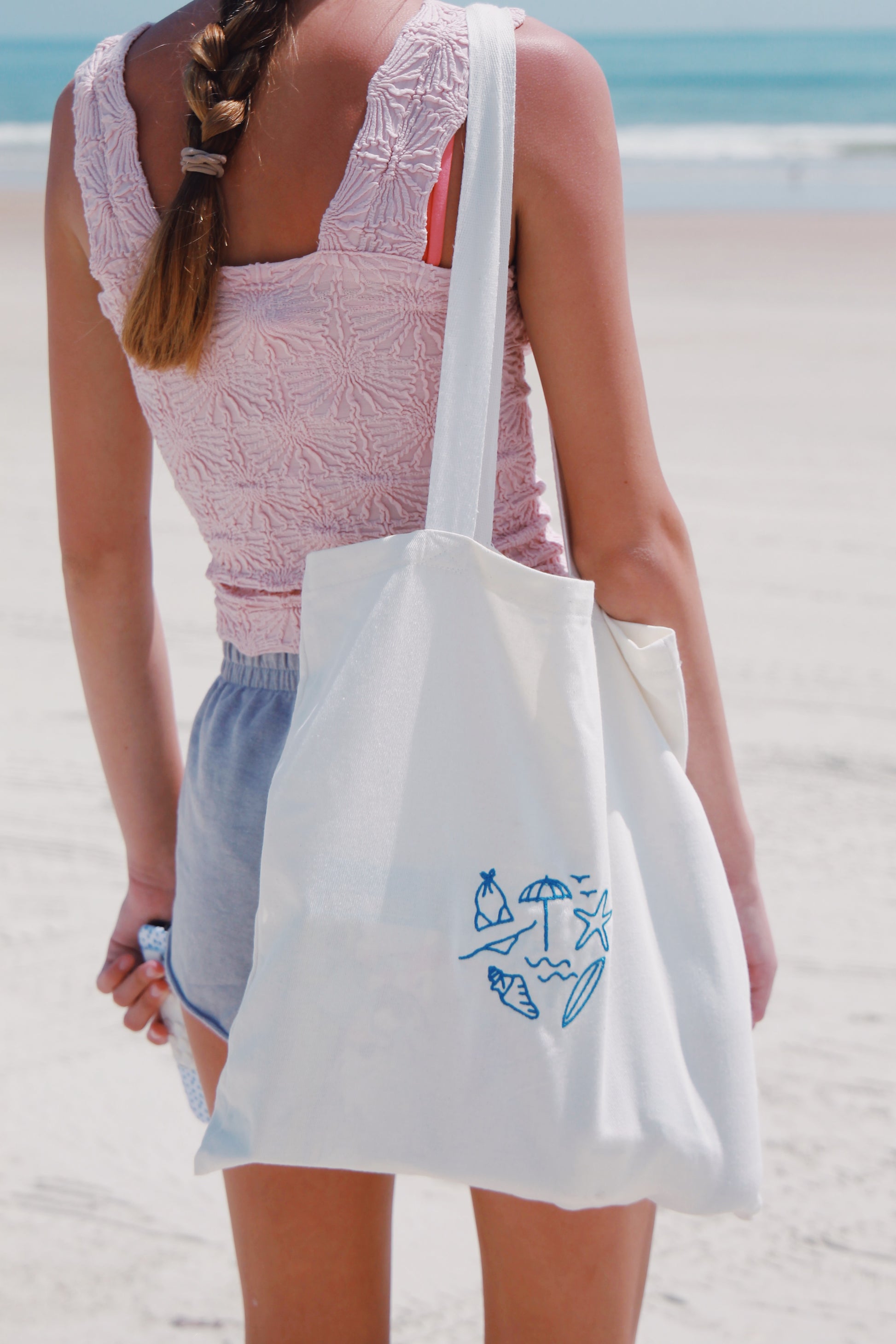 beach day embroidered bag